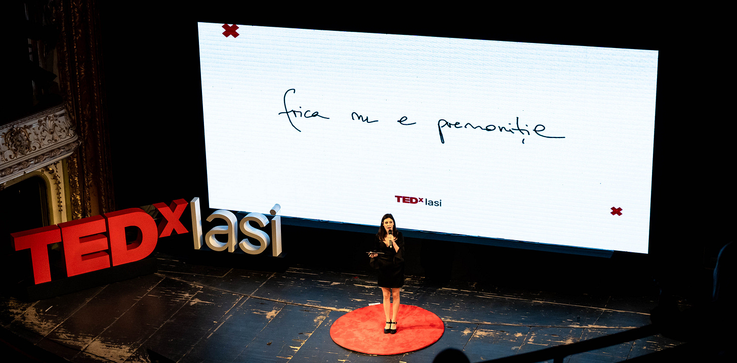 ele sunt ce sunt, perspectiva noastră asupra lor e game changer. așa cum un eveniment traumatic poate deveni aproape extatic schimbându-ne perspectiva pe care o avem asupra lui din prezent spre trecut. don’t get me wrong, să faci cancer, să moară cineva, să ți se întâmple lucruri nasoale și să crezi că sunt a blessing, că s-au întâmplat cu un motiv sau că încearcă să îți spună ceva - sună a incapacitatea de a accepta realitatea. în același timp, dacă tot trec prin greu, nu mai bine înțeleg ceva, învăț ceva, accept ceva, sunt curioasă de ceva? și cam asta m-a salvat: curiozitatea. am povestit la TEDx Iași mai multe despre asta și abia aștept să vi-l împărtășesc. cum această curiozitate nebună mă face să spun: cu toate că mi-e frică, vreau să văd despre ce e vorba.